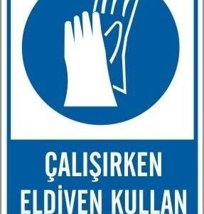 Çalışırken Eldiven Kullan Uyarı Levhası