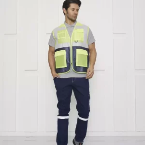 Reflektörlü Mühendis Yelek Sarı Lacivert Renk